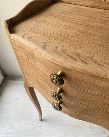 Je rénove des meubles anciens au coup de coeur, avec une sensibilité particulière pour le bois nu, les couleurs feutrées. J'aime la matière et ce qu'elle raconte une fois débarrassée de ses couches passées.
